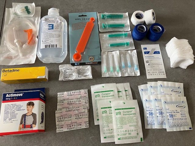 Bevat o.a. infuusset, ORS lepel, sling, extra verbandmiddelen afgestemd op de kleinere maten van het kind.